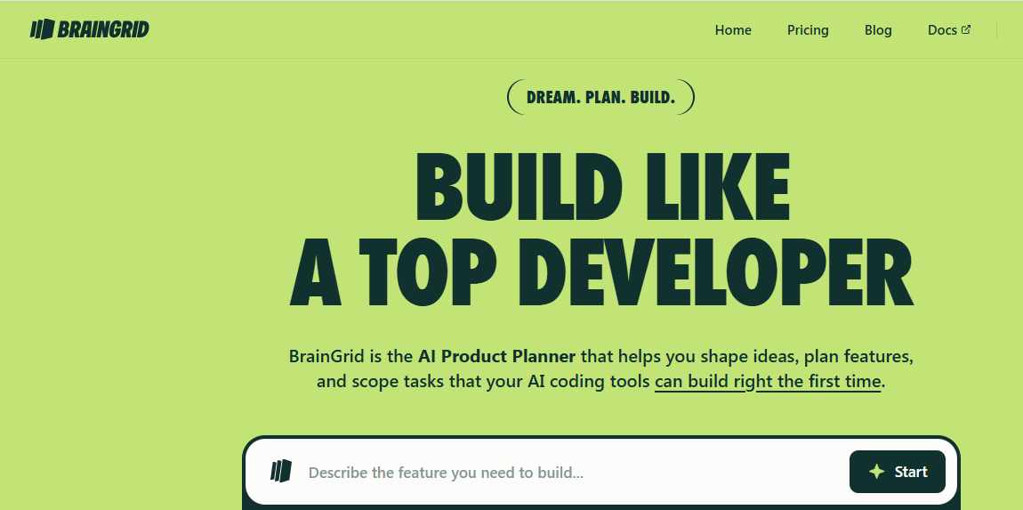 BrainGrid pozicionējas tieši šīs maiņas vidū, sniedzot netehniskiem dibinātājiem kaut ko tādu, kas viņiem nekad agrāk nav bijis: veidu, kā domāt kā produktu komandai, bez nepieciešamības.