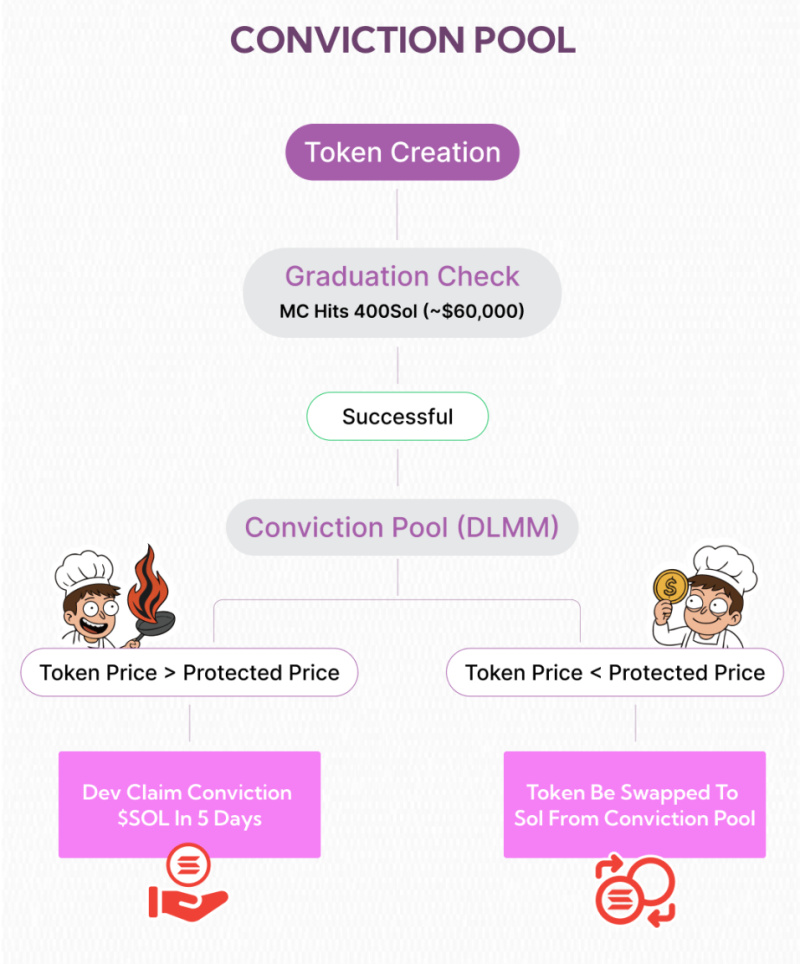 • Mīksto cenu aizsardzība: Ja marķiera absolventi, sodāmības fonds aktivizēsies. Ja cena pazeminās līdz noteiktajam līmenim, lietotāji var apmainīt savus nopirktajus žetonus uz solu no notiesājošā baseina, rīkojoties kā apdrošināšana, izveidojot tirgus kvalitātes etalonus. Ja cena nepaliek zemāk par iestatīto līmeni, izstrādātājs var pretendēt uz SOL no notiesājošā baseina.