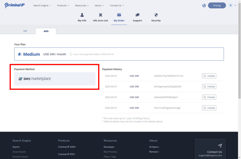 Turklāt klienti bauda konsekventus plānus un abonēšanas iespējas Criminal IP neatkarīgi no tā, vai darījumi tiek uzsākti, izmantojot Criminal IP vai AWS Marketplace. Šī vienveidība attiecas uz kredītu izmantošanas uzraudzību specifiskām funkcijām un API, kas ir pieejamas tieši no informācijas paneļa, veicinot pārskatāmību un pārvaldību.