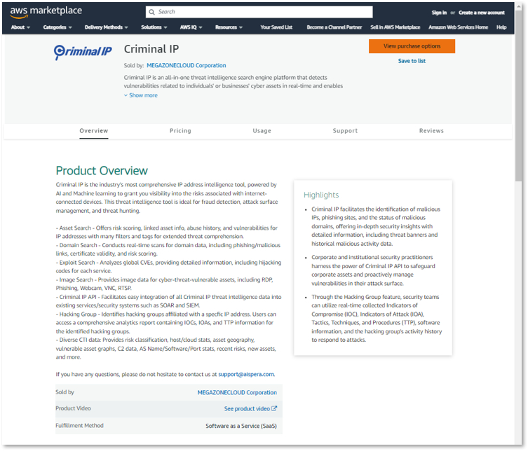 Izpētiet AWS tirgū jaunizveidotā Criminal IP detalizētās funkcijas, kā arī Criminal IP ASM — Automated Attack Surface Management SaaS risinājumu, kas uzrauga visus ar internetu saistītos īpašumus un ievainojamības.