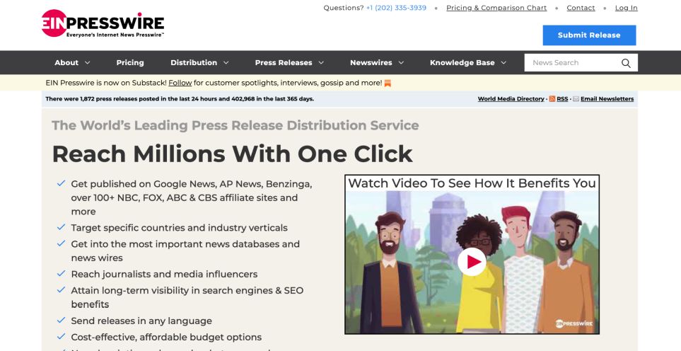 Ein Presswire ir satura izplatīšanas pakalpojums, kas atšķir sevi pēc cenas, bet tas to dara, neizmantojot sasniedzamību. Atbrīvo plūsmu uz Google News, AP News, Bing un Nexstar tīklu, dodot piekļuvi aptuveni 170 miljoniem ikmēneša lietotāju. Kad esat iegādājies kredītus platformai, tie nebeidzas visu gadu, tāpēc mazas komandas var iegādāties vairumā un nosūtīt atjauninājumus pēc nepieciešamības.