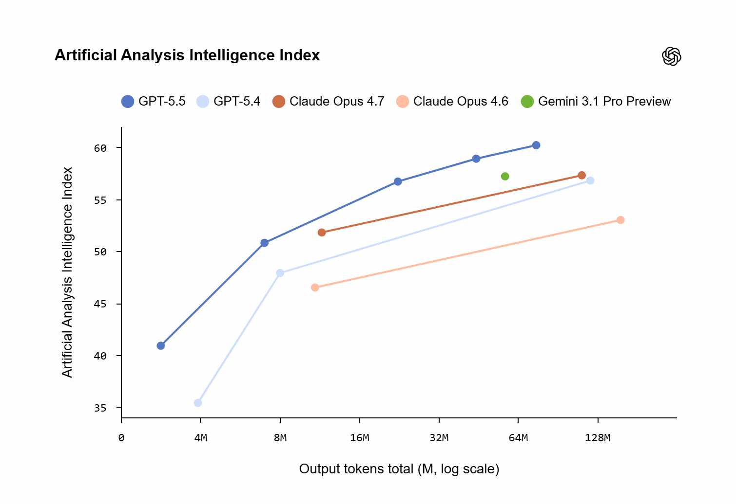 Saskaņā ar uzņēmuma sniegto informāciju, izmantojot mākslīgās analīzes kodēšanas indeksu, GPT-5.5 nodrošina vismodernāko veiktspēju par aptuveni pusi no konkurējošo robežkodēšanas modeļu izmaksām.