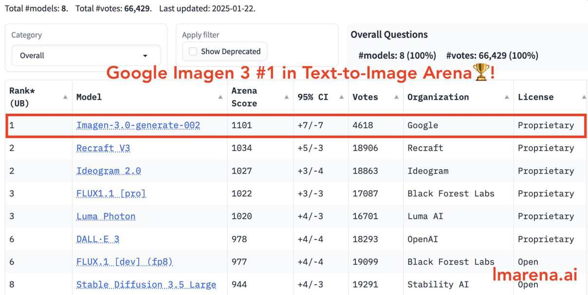 Imagen 3 arī ātri ieņēma vietu #1 teksta pārveidošanas telpā, apsteidzot tādus konkurentus kā Recraft-v3 ar iespaidīgu 70 punktu pārsvaru. Šis papildinājums nostiprina Freepik kā populāras platformas pozīcijas radošiem profesionāļiem, kuri meklē progresīvus ar AI darbināmus dizaina rīkus.