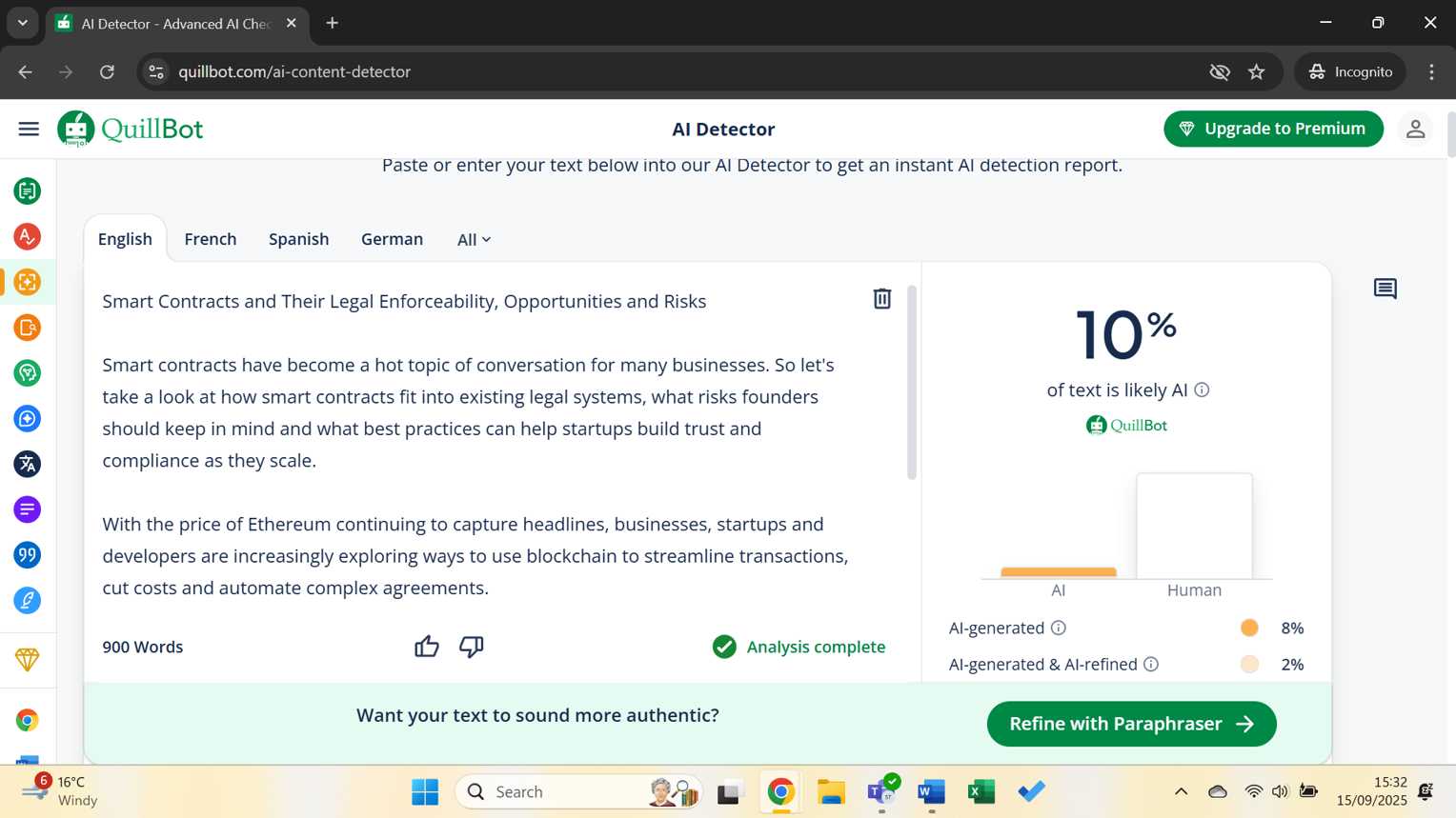Tomēr viedo līgumu likums joprojām tiek izstrādāts. Tas ir sarežģītāk, un dažādas jurisdikcijas izmanto dažādas pieejas. Dažās jomās tiesas un regulatori sāk atzīt blokķēdes nolīgumus par spēkā esošiem līgumtiesībām, ja tie atbilst iekļautajām pamatprasībām.